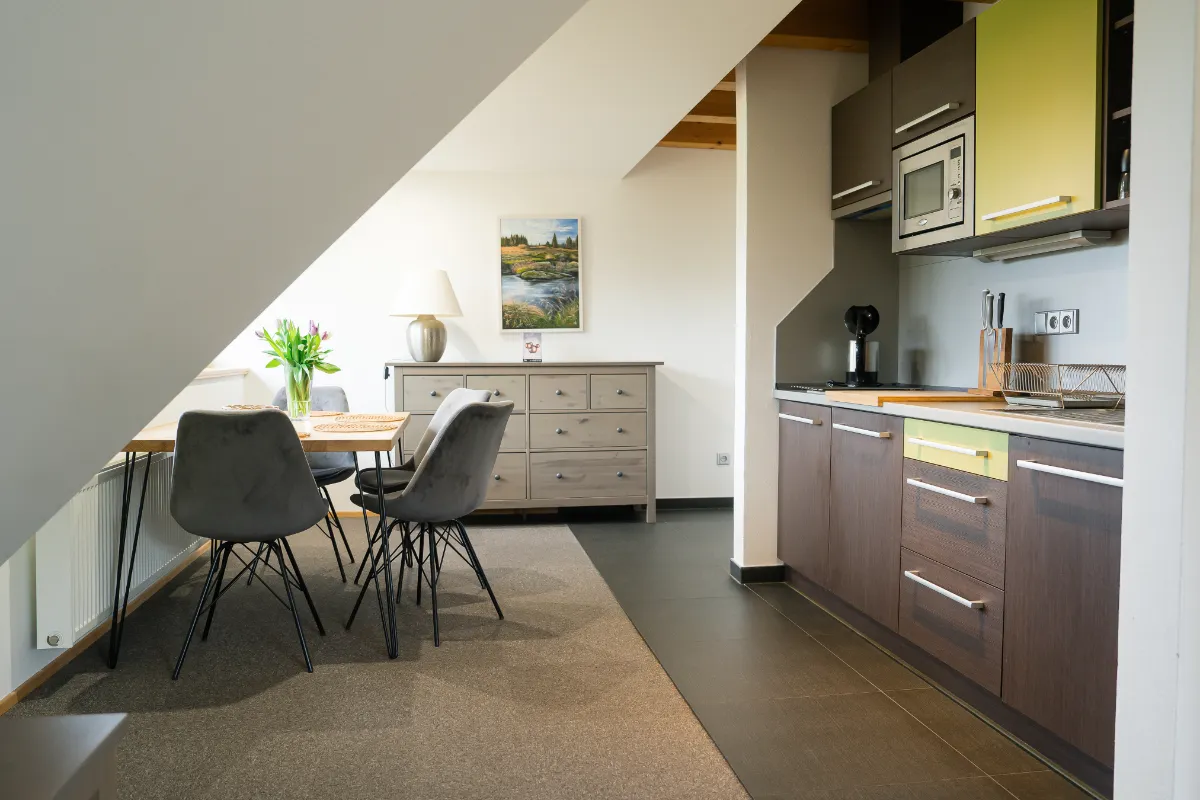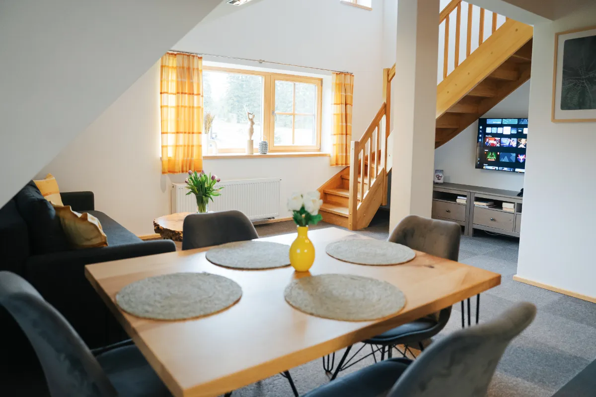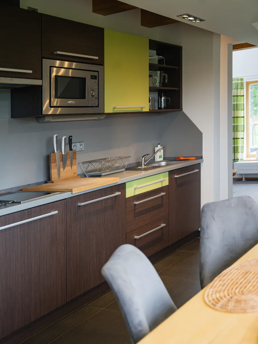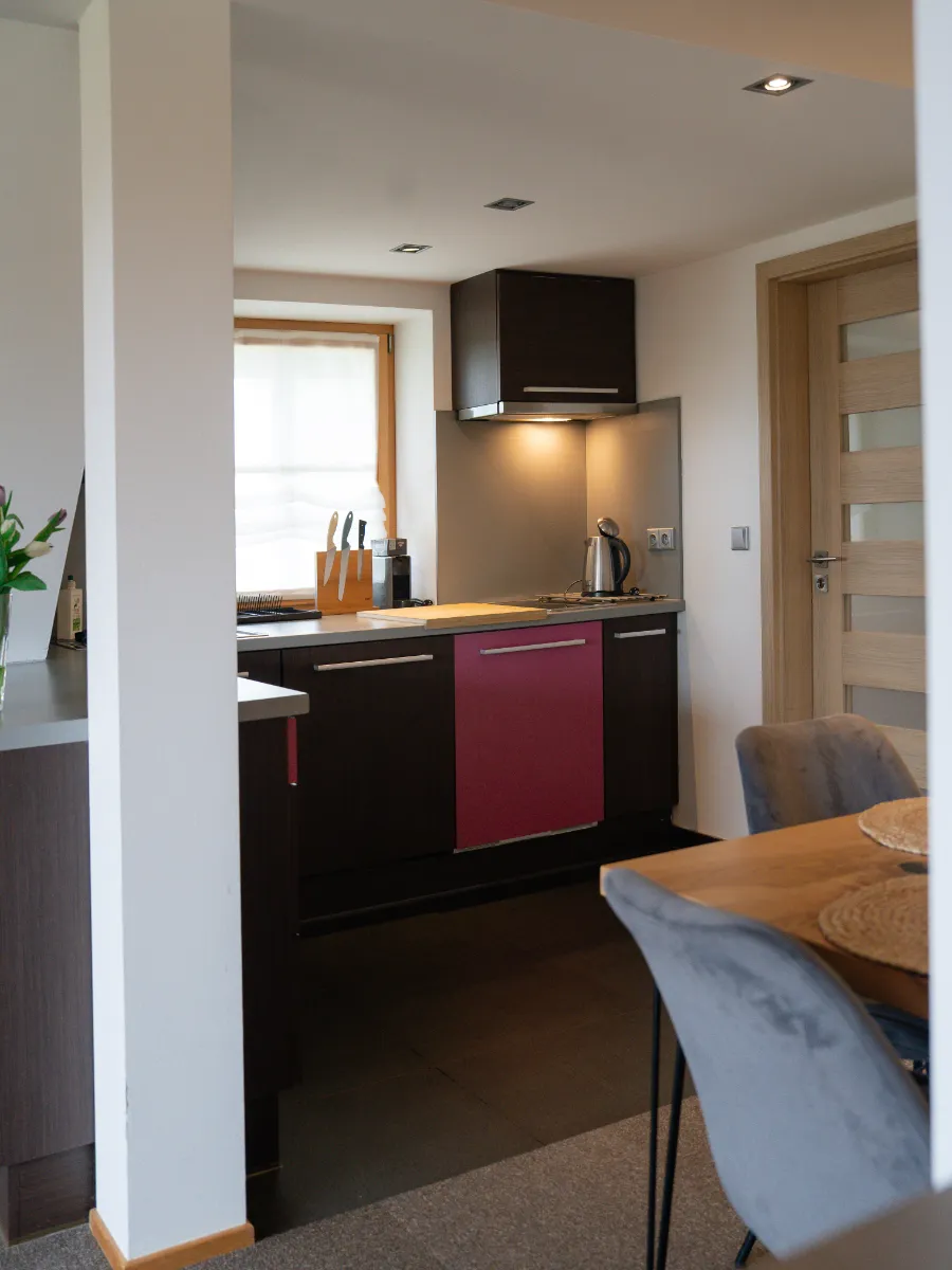Náš největší apartmán o dispozici 2+kk nabízí příjemné ubytování s dostatečným soukromím až pro 4 osoby a jedinečný výhled na Roklany. Disponuje také oddělenou předsíní a plně vybaveným kuchyňským koutem, ve kterém nechybí ani myčka nádobí nebo kávovar.